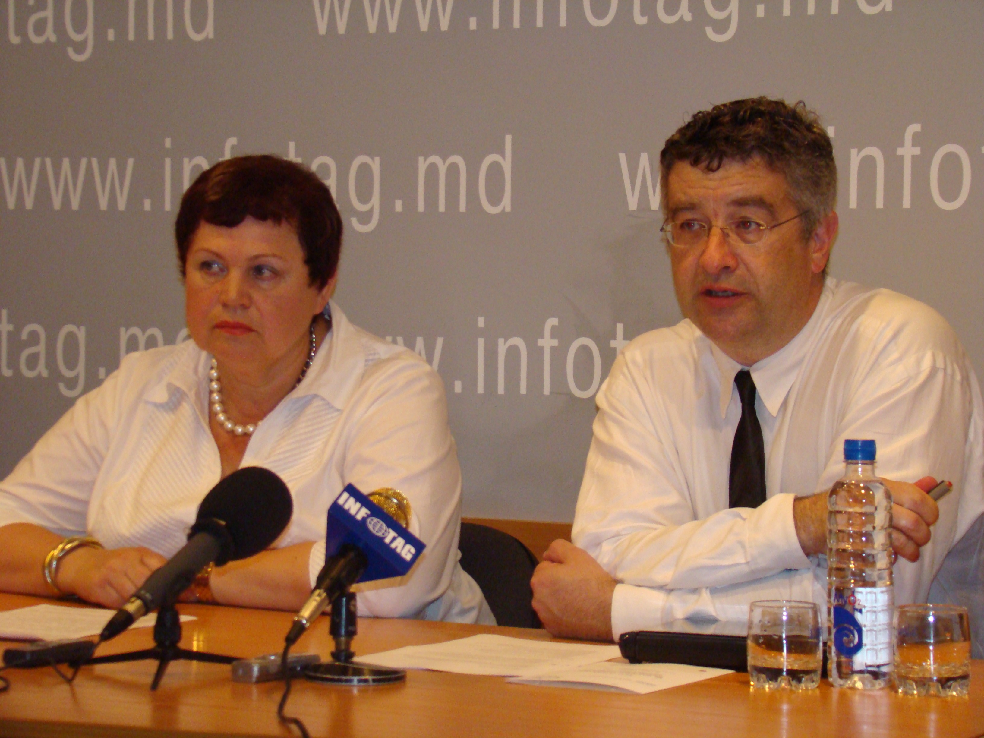 L. Nemcinova & H. Born at press conference in Chisinau (July 2009)